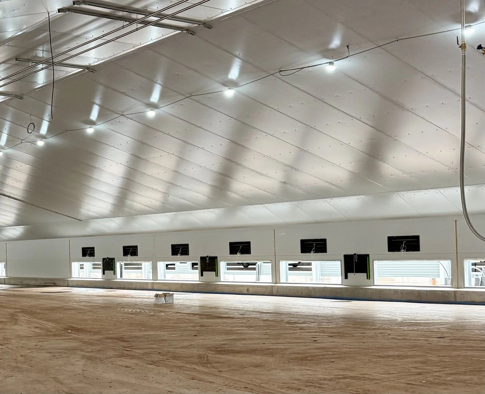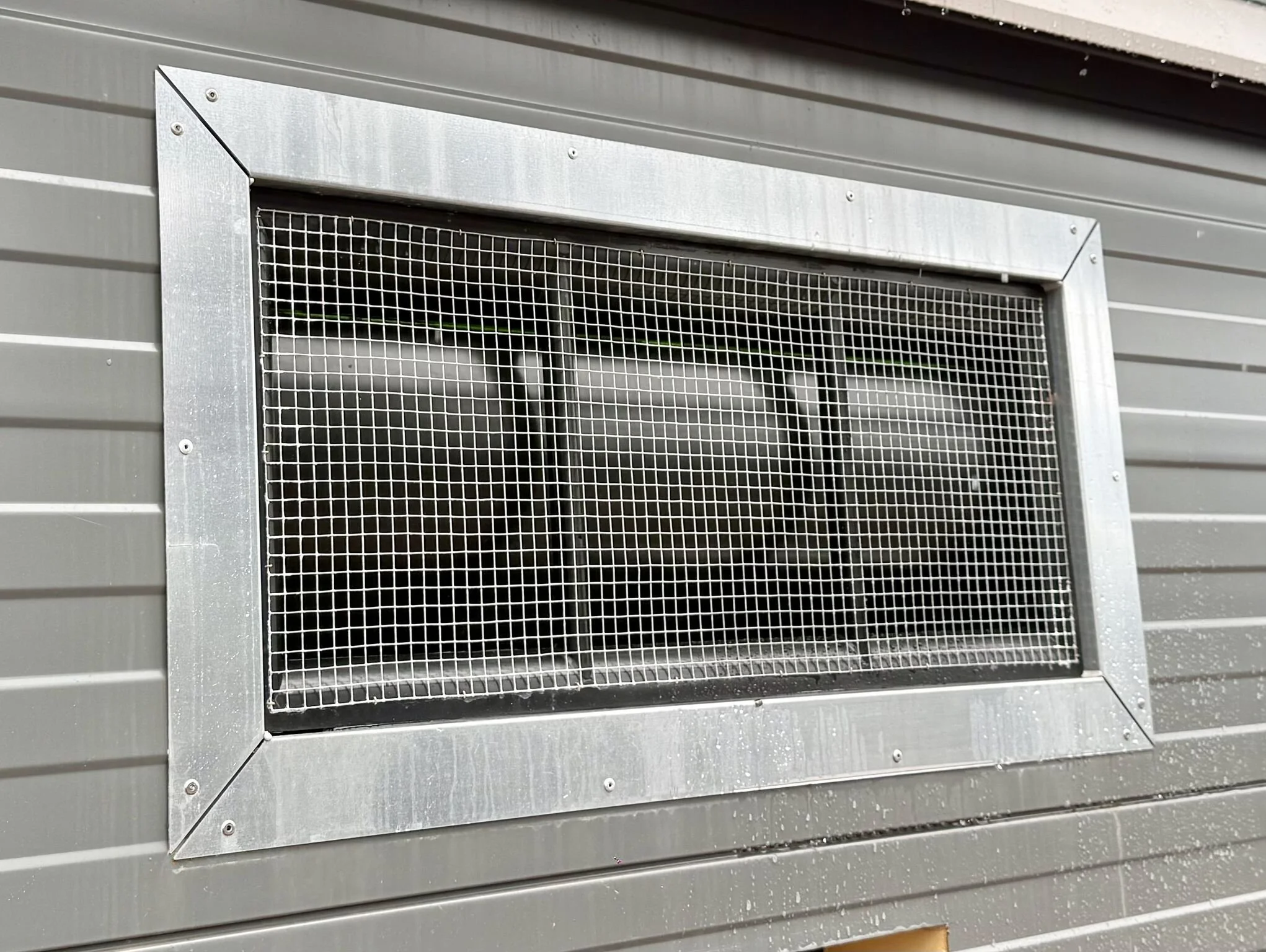 Fantura sliding inlets were installed beside the windows, providing directional airflow control in areas where nests, equipment or internal structures could interrupt the air pattern. These inlets allow each louvre to be set independently, ensuring the incoming air is directed correctly and preventing cold air from dropping on the birds.